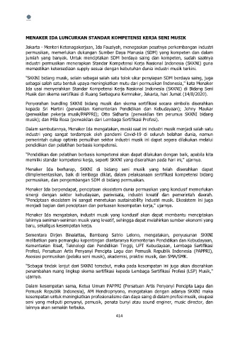 industri permusikan menerapkan Standar Kompetensi Kerja Nasional Indonesia (SKKNI) guna