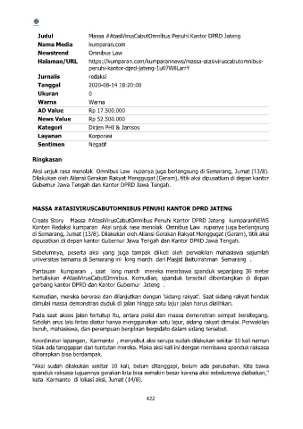 Judul Massa #AtasiVirusCabutOmnibus Penuhi Kantor DPRD Jateng