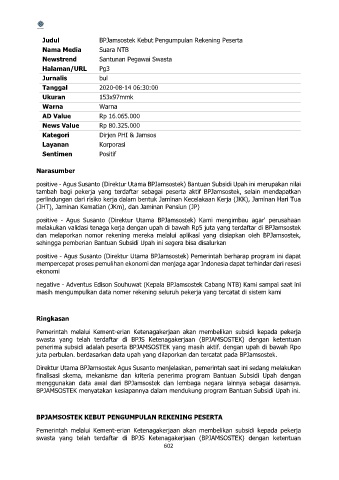 positive - Agus Susanto (Direktur Utama BPJamsostek) Bantuan Subsidi Upah ini merupakan nilai