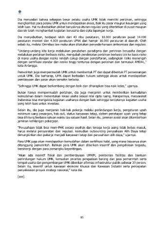 Dia menyadari bahwa sebagian besar pelaku usaha UMK tidak memiliki perizinan, sehingga