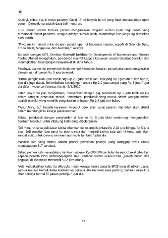 Menurutnya, BLT kepada karyawan tersebut tidak akan tepat sasaran dan tidak akan efektif