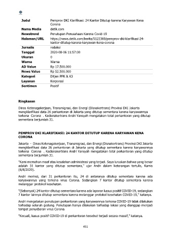 Judul Pemprov DKI Klarifikasi: 24 Kantor Ditutup karena Karyawan Kena