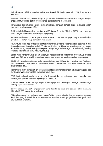 Dalam masa Pandemi Covid-19 ketika banyak industri nasional terdampak, proyek KCJB menjadi