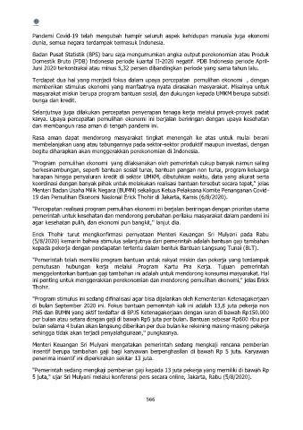 karya. Upaya percepatan pemulihan ekonomi ini berjalan beriringan dengan upaya kesehatan
