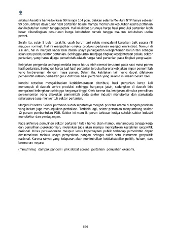 99 poin, artinya daya tukar hasil pertanian belum mampu memenuhi kebutuhan usaha pertanian