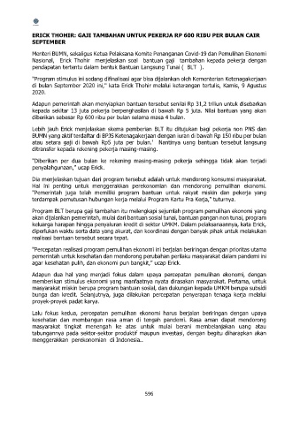 Nasional, Erick Thohir menjelaskan soal bantuan gaji tambahan kepada pekerja dengan