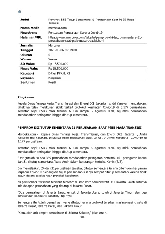 Judul Pemprov DKI Tutup Sementara 31 Perusahaan Saat PSBB Masa
