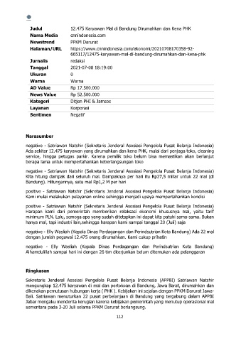 mengungkap 12.475 karyawan di mal dan pertokoan di Bandung, Jawa Barat, dirumahkan dan