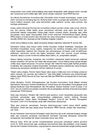 dan nonesensial serta kritikal agar lebih sesuai dengan kebijakan masa PPKM Darurat.