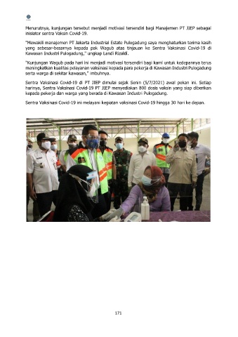 Menurutnya, kunjungan tersebut menjadi motivasi tersendiri bagi Manajemen PT JIEP sebagai