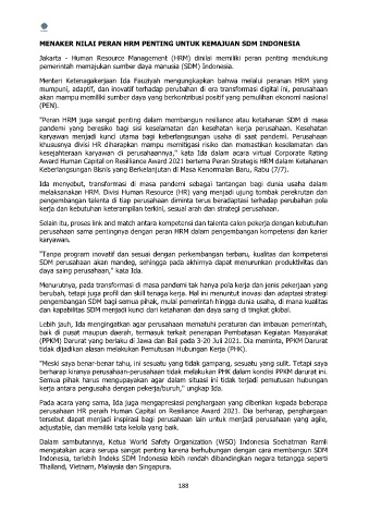 perusahaan HR peraih Human Capital on Resiliance Award 2021. Dia berharap, penghargaan