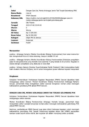 positive - Airlangga Hartarto (Menteri Koordinator Bidang Perekonomian) Dilakukan pengetatan