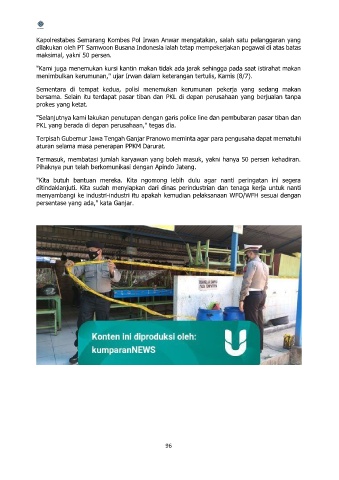 bersama. Selain itu terdapat pasar tiban dan PKL di depan perusahaan yang berjualan tanpa
