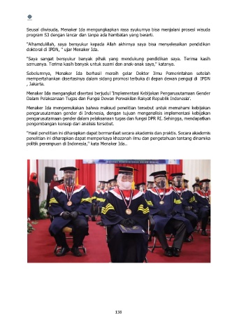 Menaker Ida mengangkat disertasi berjudul 'Implementasi Kebijakan Pengarusutamaan Gender