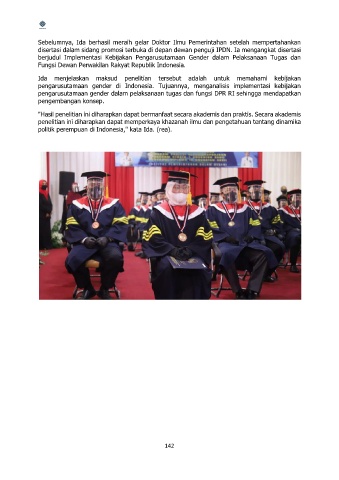 Sebelumnya, Ida berhasil meraih gelar Doktor Ilmu Pemerintahan setelah mempertahankan
