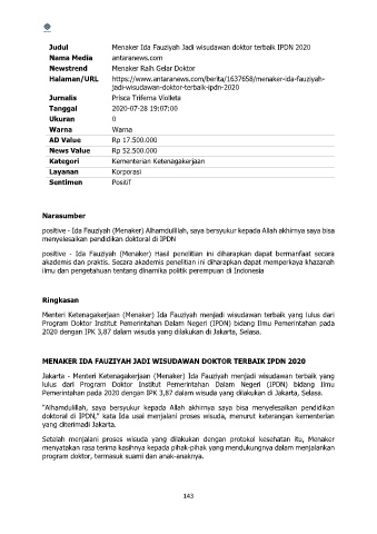 Judul Menaker Ida Fauziyah Jadi wisudawan doktor terbaik IPDN 2020