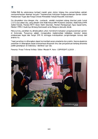 mempertahankan disertasi berjudul "Implementasi Kebijakan Pengarusutamaan Gender dalam