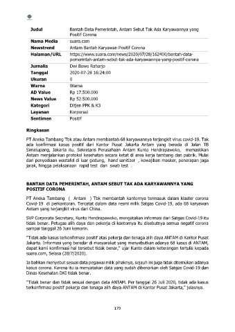 "Tidak benar dan tidak sesuai dengan data ANTAM. Per tanggal 26 Juli 2020, tidak ada kasus