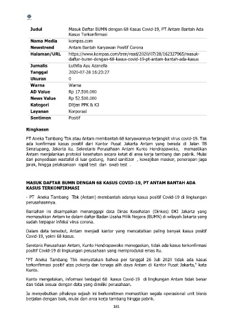 Judul Masuk Daftar BUMN dengan 68 Kasus Covid-19, PT Antam Bantah Ada
