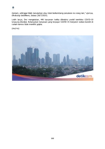 langsung diisolasi. Kebanyakan karyawan yang terpapar COVID-19 menjalani isolasi mandiri di