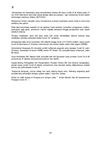 "Pemberitaan di masyarakat yang menyebutkan adanya 68 kasus Covid-19 di Antam pada 27