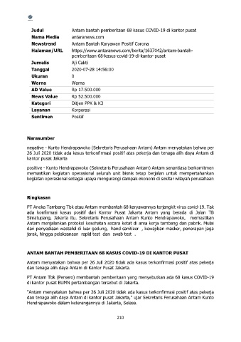 "Antam menyatakan bahwa per 26 Juli 2020 tidak ada kasus terkonfirmasi positif atas pekerja
