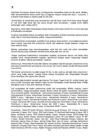 Perusahaan: Kantor PT Antam 68 kasus Kimia Farma pusat 20 kasus ACT 12 kasus Samudera