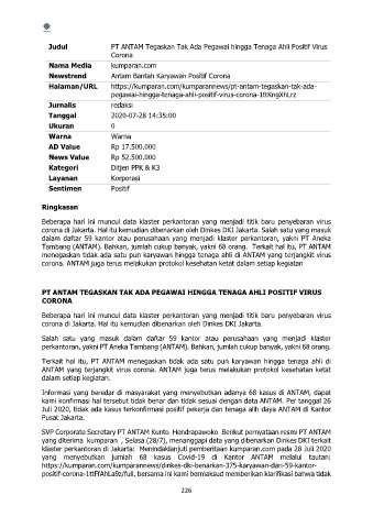 yang menyebutkan jumlah 68 kasus Covid-19 di Kantor ANTAM melalui tautan: