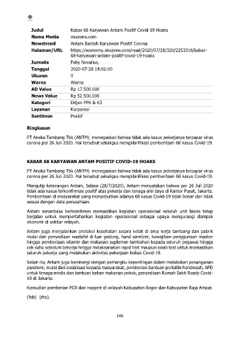 KABAR 68 KARYAWAN ANTAM POSITIF COVID-19 HOAKS