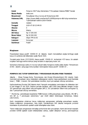 Judul Pemprov DKI Tutup Sementara 7 Perusahaan Selama PSBB Transisi