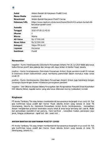 negative - Kunto Hendrapawoko (Sekretaris Perusahaan Antam) Per 26 Juli 2020 tidak ada kasus