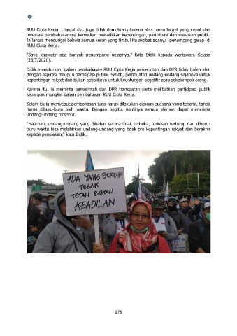 RUU Cipta Kerja , lanjut dia, juga tidak demokratis karena atas nama target yang cepat dan