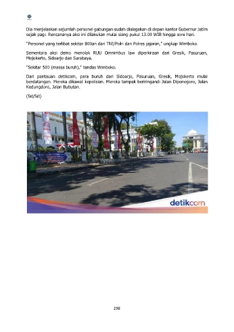 Dia menjelaskan sejumlah personel gabungan sudah disiagakan di depan kantor Gubernur Jatim