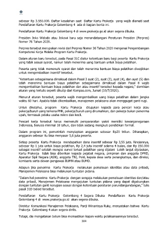 sebesar Rp 1 juta untuk biaya pelatihan, Rp 2,4 juta insentif selama 4 bulan, dan Rp 150.000