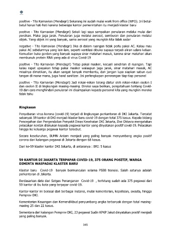 sebanyak 59 kantor di DKI menjadi klaster baru covid-19 dengan total 375 kasus. Kepala bidang
