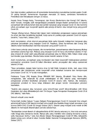 pimpinan perusahaan yang terpapar Covid-19. Pasalnya, Dinas Na-kertrans dan Energi DKI