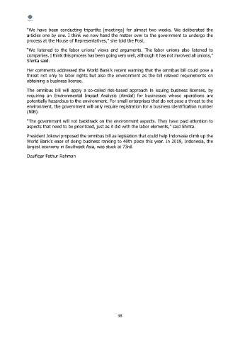 President Jokowi proposed the omnibus bill as legislation that could help Indonesia climb up the