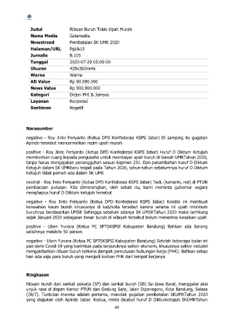 negative - Roy Jinto Feriyanto (Ketua DPD Konfederasi KSPS Jabar) Kondisi ini membuat