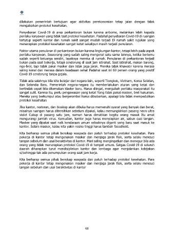 perilaku karyawan yang tidak taat protokol kesehatan. Padahal penyebaran Covid-19 di ruangan
