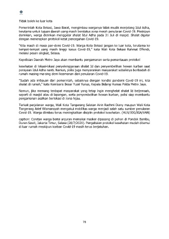 perayaan Idul Adha nanti. Namun, polisi juga menyarankan masyarakat sebaiknya beribadah di