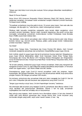 "Perusahaan perkantoran mayoritas patuhi aturan, 50 persen yang masuk. Cuma ada satu dua