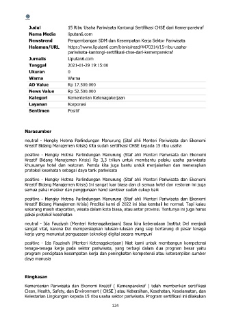 Kreatif Bidang Manajemen Krisis) Kita sudah sertifikasi CHSE kepada 15 ribu usaha