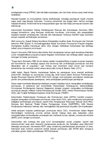 Peningkatan Kualitas Perempuan tahun 2021 dengan melibatkan kementerian dan lembaga
