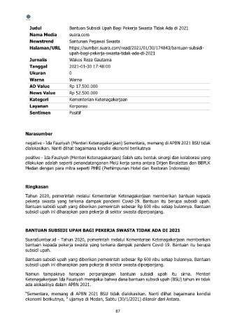 negative - Ida Fauziyah (Menteri Ketenagakerjaan) Sementara, memang di APBN 2021 BSU tidak