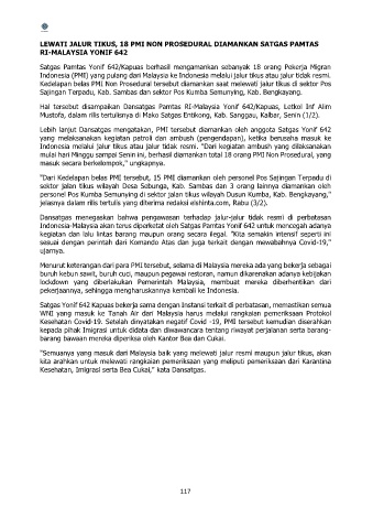 Indonesia (PMI) yang pulang dari Malaysia ke Indonesia melalui jalur tikus atau jalur tidak resmi.