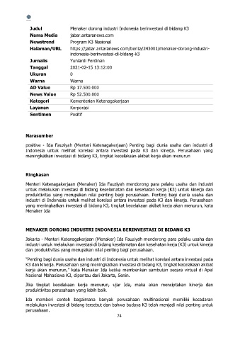 Page 75 - e-KLIPING KETENAGAKERJAAN 16 FEBRUARI 2021