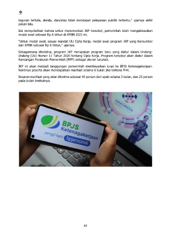"Untuk modal awal, sesuai mandat UU Cipta Kerja, modal awal program JKP yang bersumber