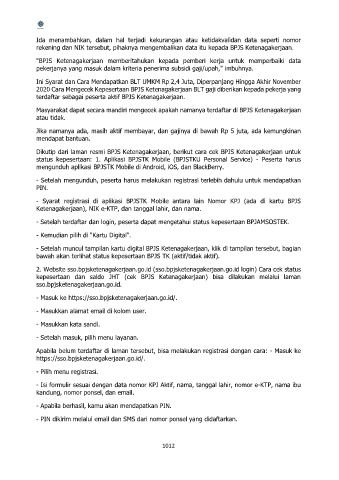 Masyarakat dapat secara mandiri mengecek apakah namanya terdaftar di BPJS Ketenagakerjaan