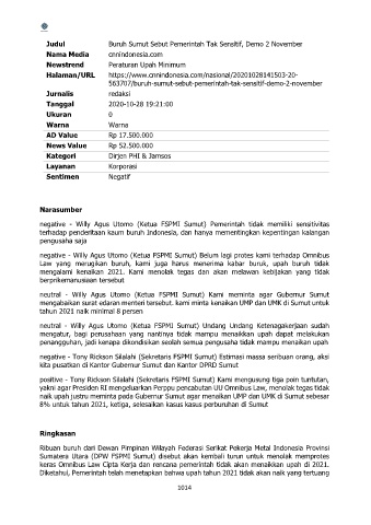 negative - Willy Agus Utomo (Ketua FSPMI Sumut) Pemerintah tidak memiliki sensitivitas