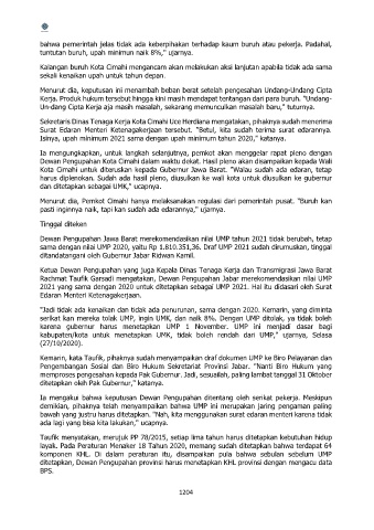 Dewan Pengupahan Kota Cimahi dalam waktu dekat. Hasil pleno akan disampaikan kepada Wali